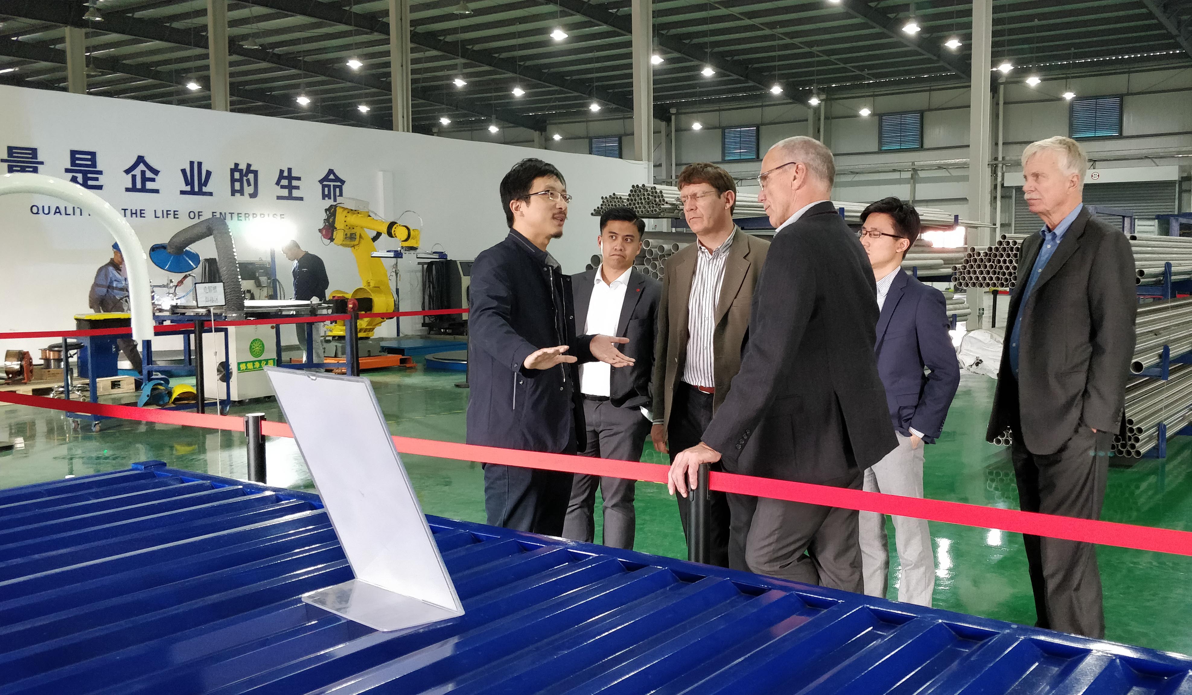 Andreas Truckenbrodt博士一行在公司負責人的陪同下參觀了安思卓自動化生產車間、樣品展示區以及氫能技術研發實驗室,著重了解了安思卓三大業務模塊:全球最大的單體集裝箱式電解水制氫設備VERDE-500、全球首臺制氫加氫一體機VERDE-CUBE 10以及加氫站建設經驗。Andreas Truckenbrodt博士對安思卓堅持自主研發,持續創新的企業精神給予了高度評價。